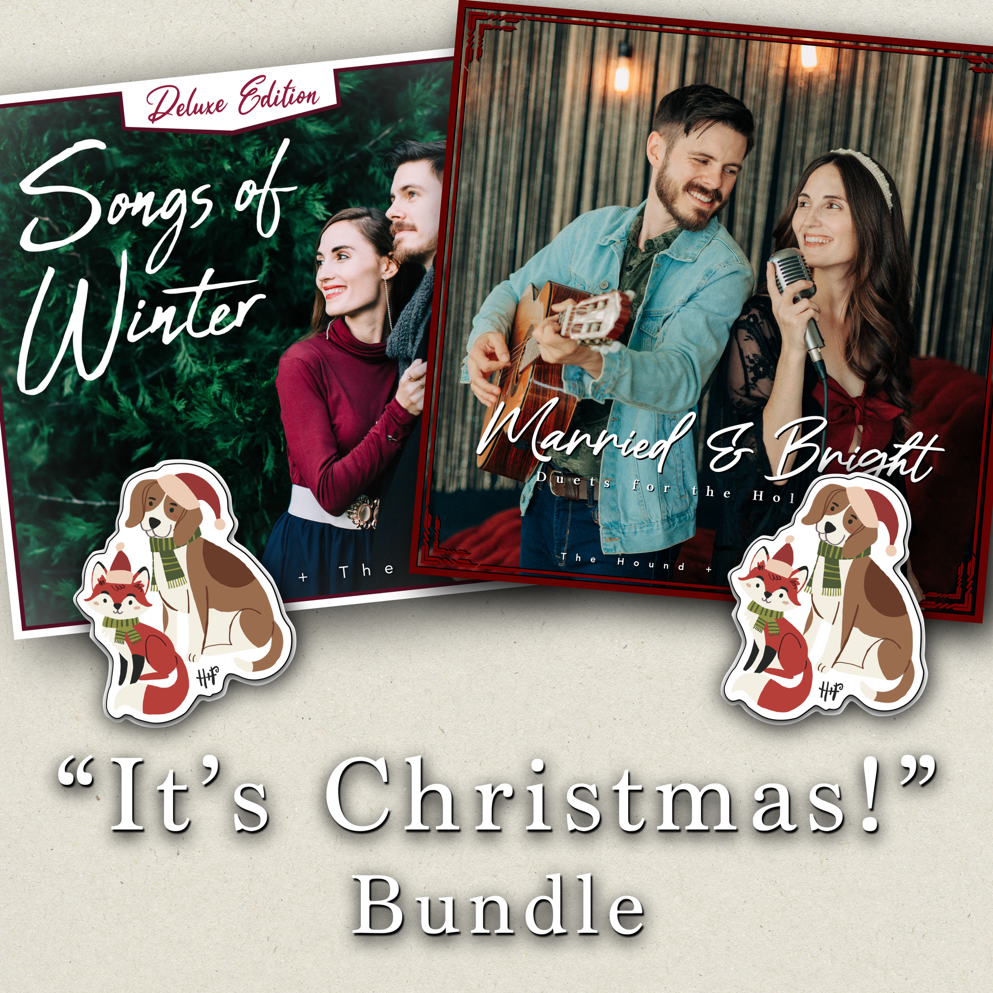 A special Holiday bundle of our Christmas-themed albums: our best-seller "Songs of Winter (Deluxe)", our brand new "Married & Bright: Duets for the Holidays", and 2 Christmas H+F waterproof/dishwasher-safe stickers!
